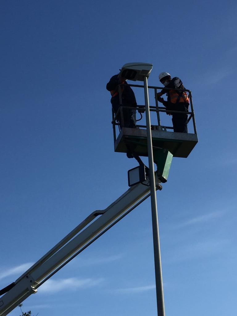 Intervento tecnico di manutenzione su palo per illuminazione pubblica